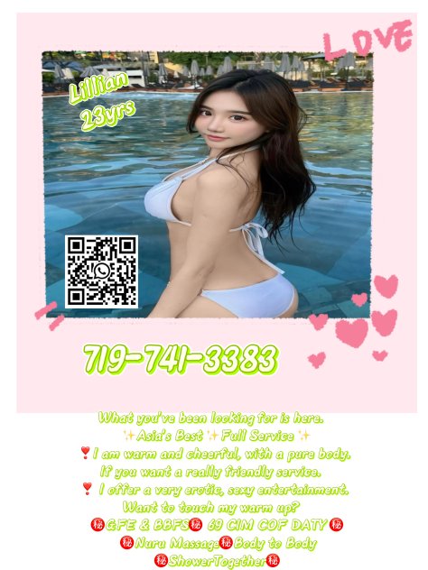 ππ beauties have just arrived in this cityββ Skilled massage techniques to help you relax your whole bodyππYour massage dream will come true hereβ βIf you are looking for the best place to relax, please contact meπβ£This is a place that will make you happy and unforgettableβ£β You will definitely get a relaxing and comfortable massage serviceβ£πWilling to make your fantasy come true, your dream come true,πβ¨Believe me, the warm and comfortable environment will make you feel at home while loving the massage!β¨The best massage, the best service attitude, impeccable!We are ready to provide you with the best massage, just call us directly!βΆYou will have the most relaxing and unforgettable experience of your life. βββText 719-741-3383 call719-741-3383